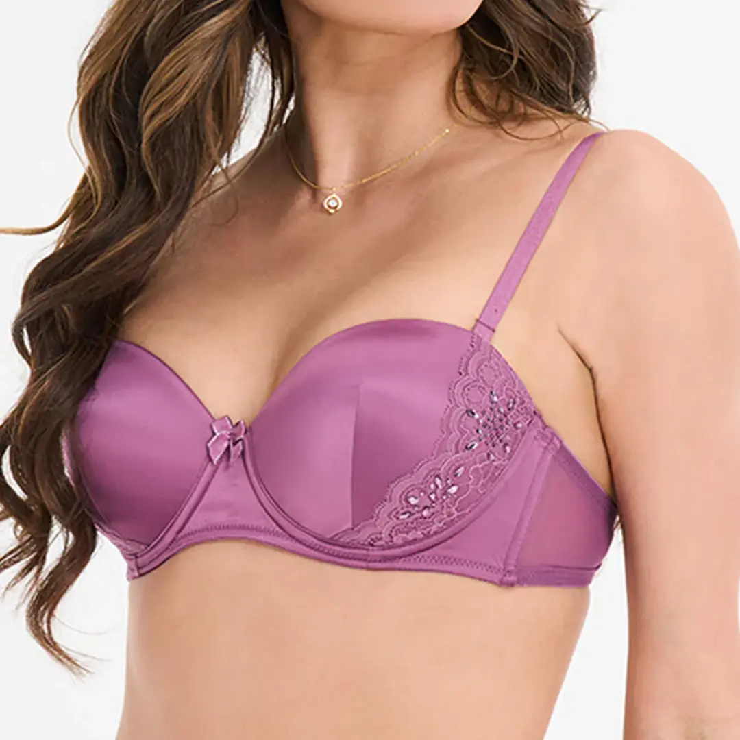 Sparkle Lace-Trim Satin Light Padded Multiway Bra, Lace Light Padded Bra – Elegant Comfort & Natural Shape Everyday Wear.
